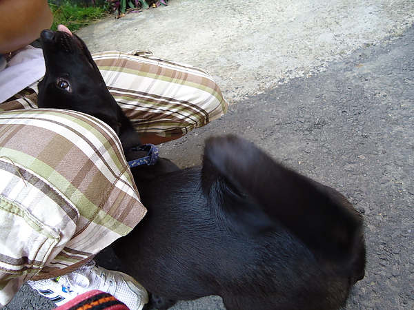 路上可愛的黑狗,鹿港有許多耳朵尖尖的狗 (牠本來在吃爆米花)