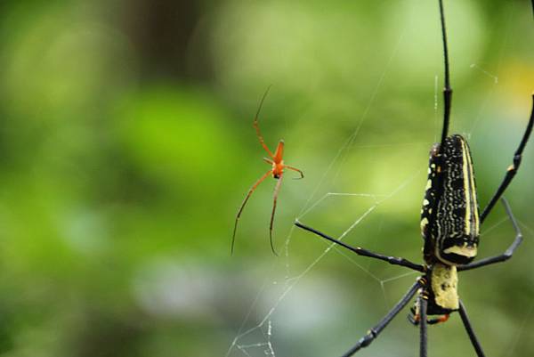 小紅是公人面蜘蛛,大黃是母人面蜘蛛。