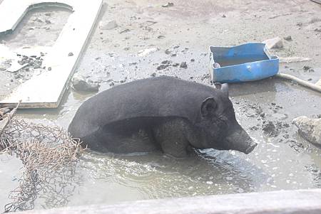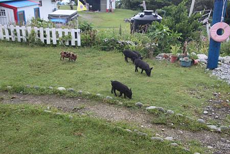 ↓下午三點,一群豬跑進民宿後方的草地吃草