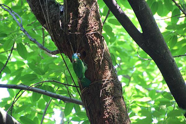 (其實不太確定是不是公鳥,因為鳥的公母通常無法由外觀判定,推測是公鳥先築出樹洞後,再去尋找母鳥交配並共同居住)
